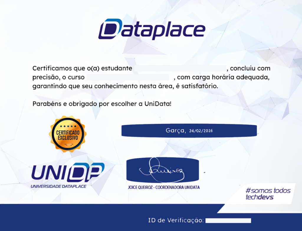 Um reconhecimento oficial do seu desenvolvimento e da sua evolução no uso da plataforma Dataplace.